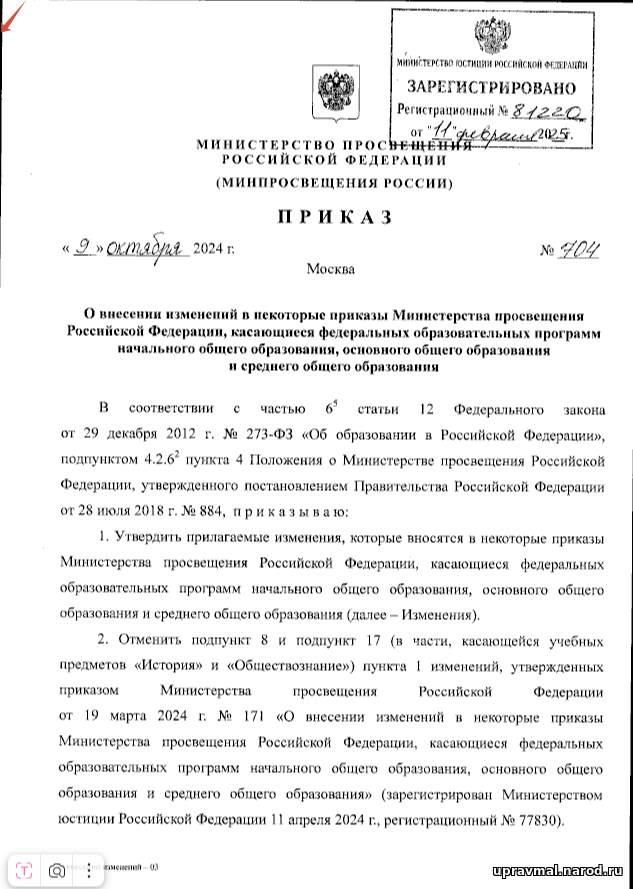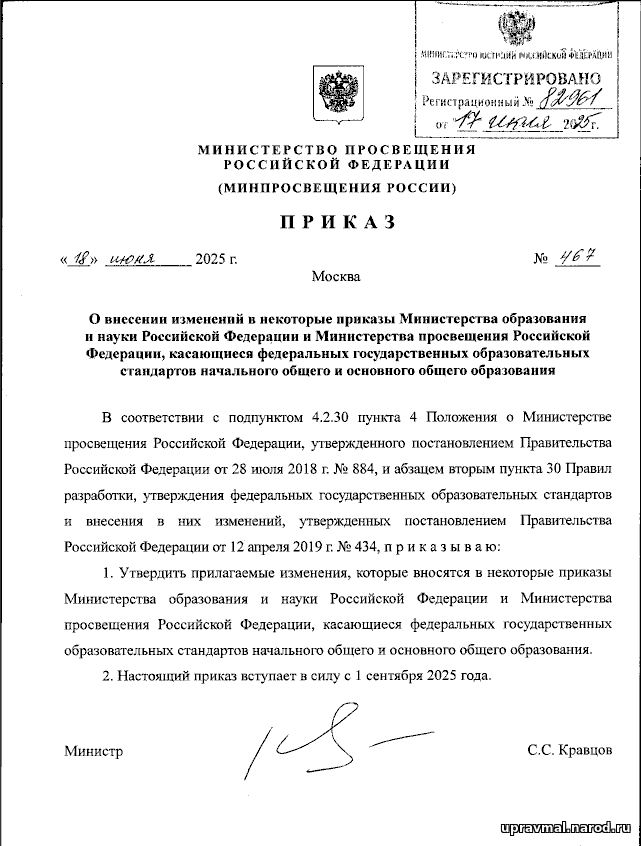 - Приказ Минпросвещения России от 31 мая 2021 г. № 287 «Об утверждении федерального государственного образовательного стандарта основного общего образования»